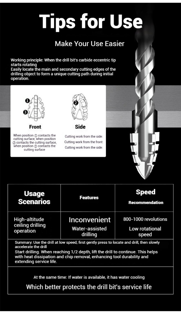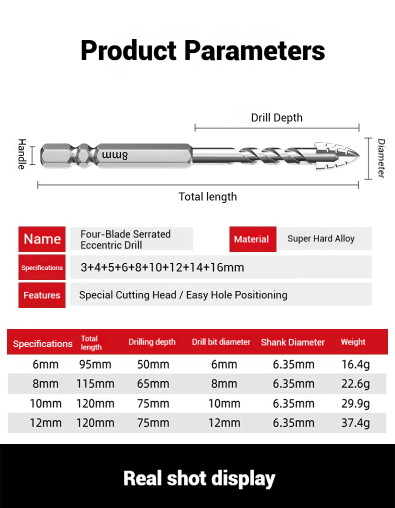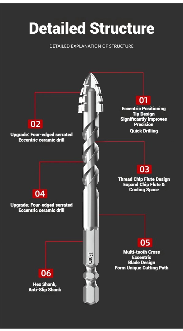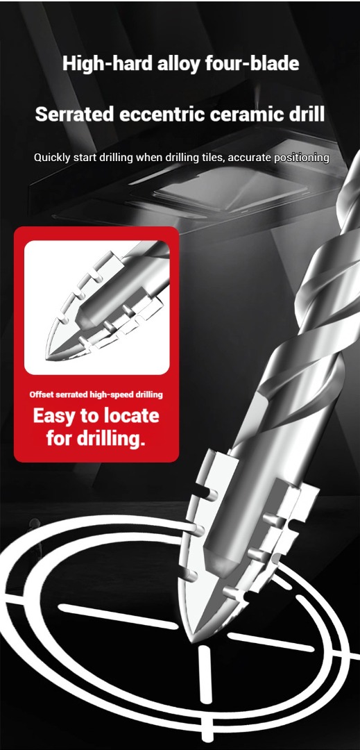 【3+4+5+6+8+10+12+14+16 mm】Broca excéntrica de acero de tungsteno superduro mejorada de séptima generación con dentado
