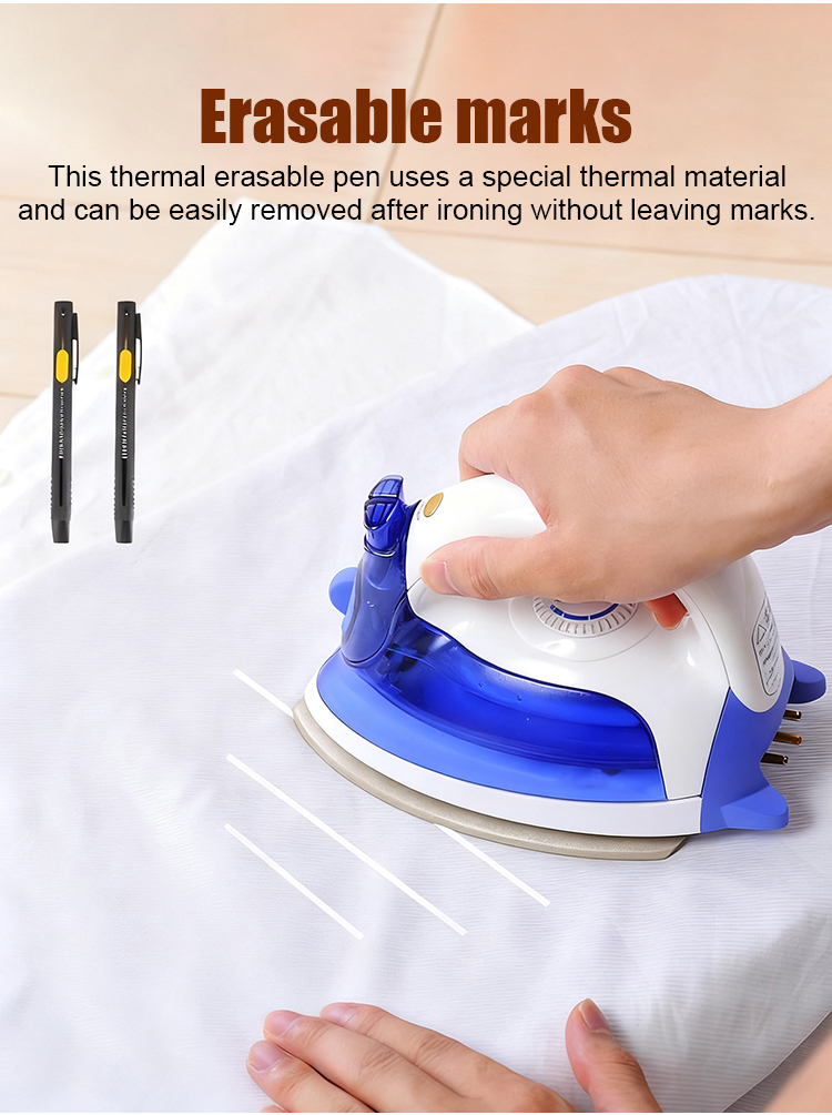 Este bolígrafo térmico borrable utiliza un material térmico especial y se puede eliminar fácilmente después de planchar, sin dejar marcas.